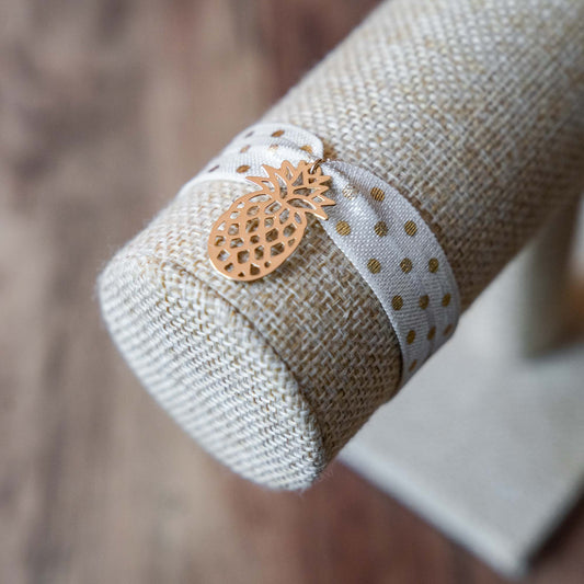 Bracelet ruban beige à pois motif ananas