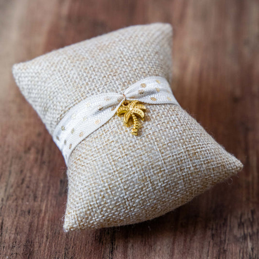 Bracelet ruban beige à pois motif palmier